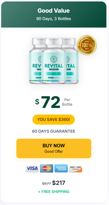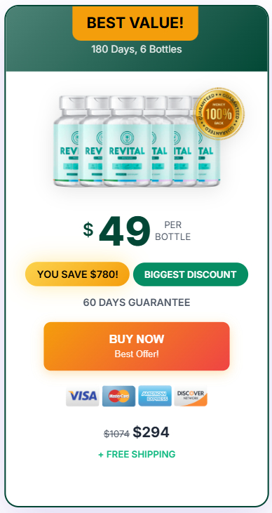 If you decide to try Revital, the safest and most reliable way to purchase is directly through the Official Website, where you’re certain to receive the genuine supplement and full access to the guarantee policy.